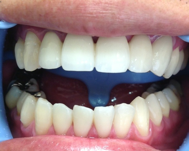 自費のオールセラミックの歯を入れていただくことになり、歯ぐきの状態が良好になってからは形や色をOさんとたくさん話し合いながら決めていきました。