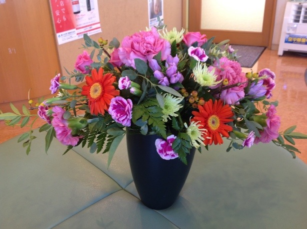 フラワーアレンジメントと秋の空 今日新しいフラワーアレンジメントが届き待合室で撮影をしました。 ふと窓の外を覗くと空の青さにビックリ!! 朝晩涼しくなり季節も秋に変わりつつありますね。 スポーツの秋、読書の秋、食欲の秋、皆さんはどんな秋ですか? 私はもちろん食欲の秋です。